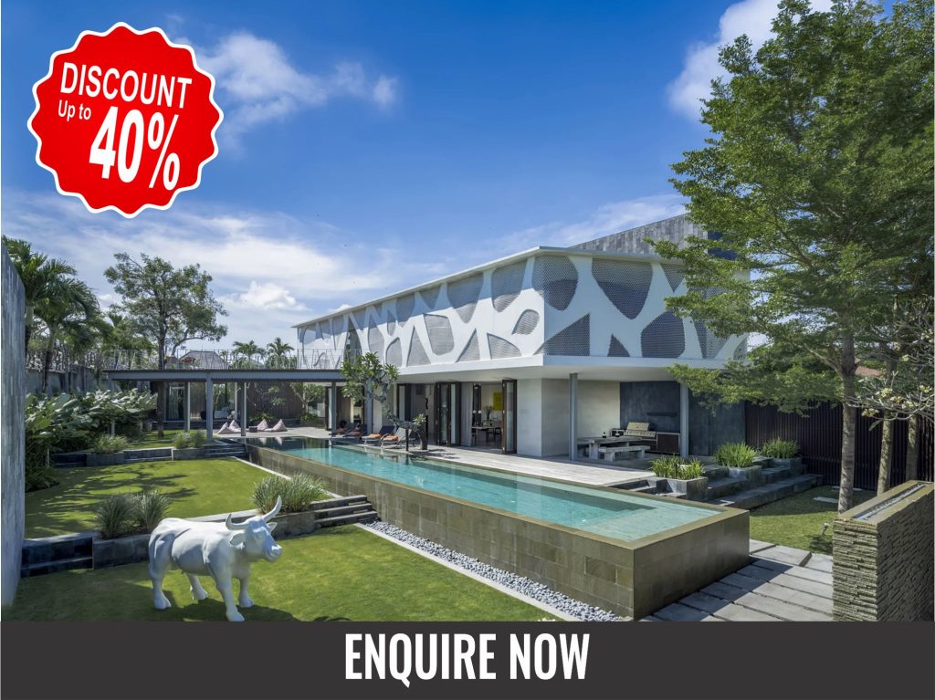 A four-bedroom sanctuary, is a dream for enthusiasts of modern, minimalist design. Situated in a prime location in Seminyak on Bali’s south-west coast, this architectural gem beautifully blends contemporary style with a serene Balinese environment.